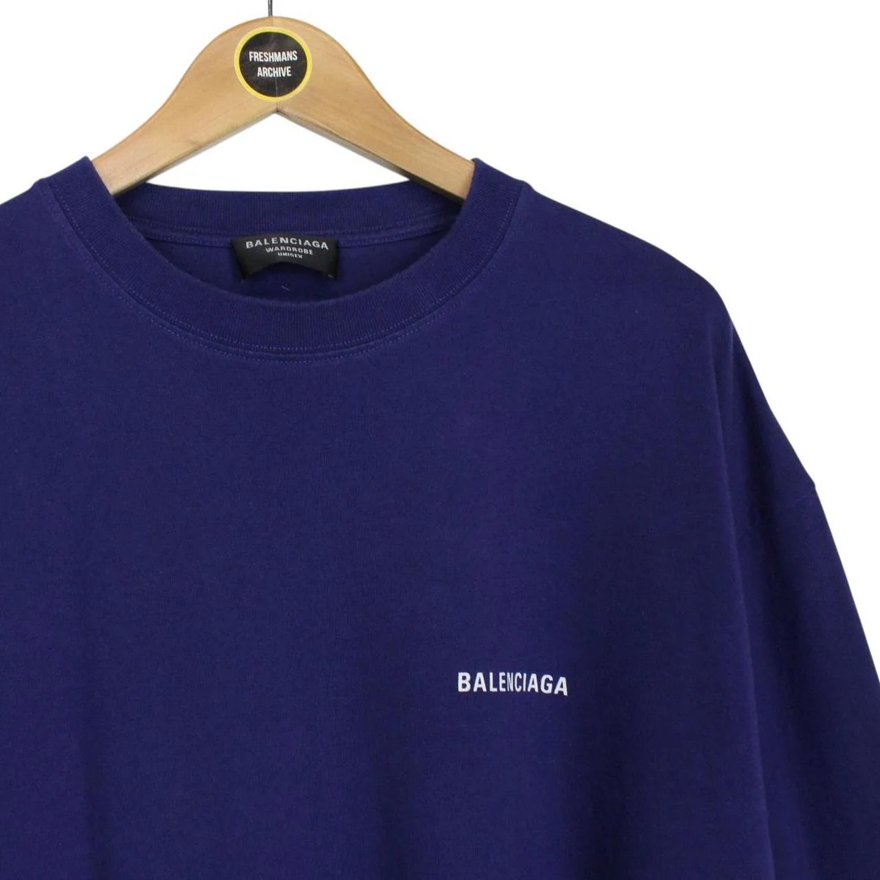 Balenciaga Blue and White Back Logo Short Sleeve Cotton T-Shirt