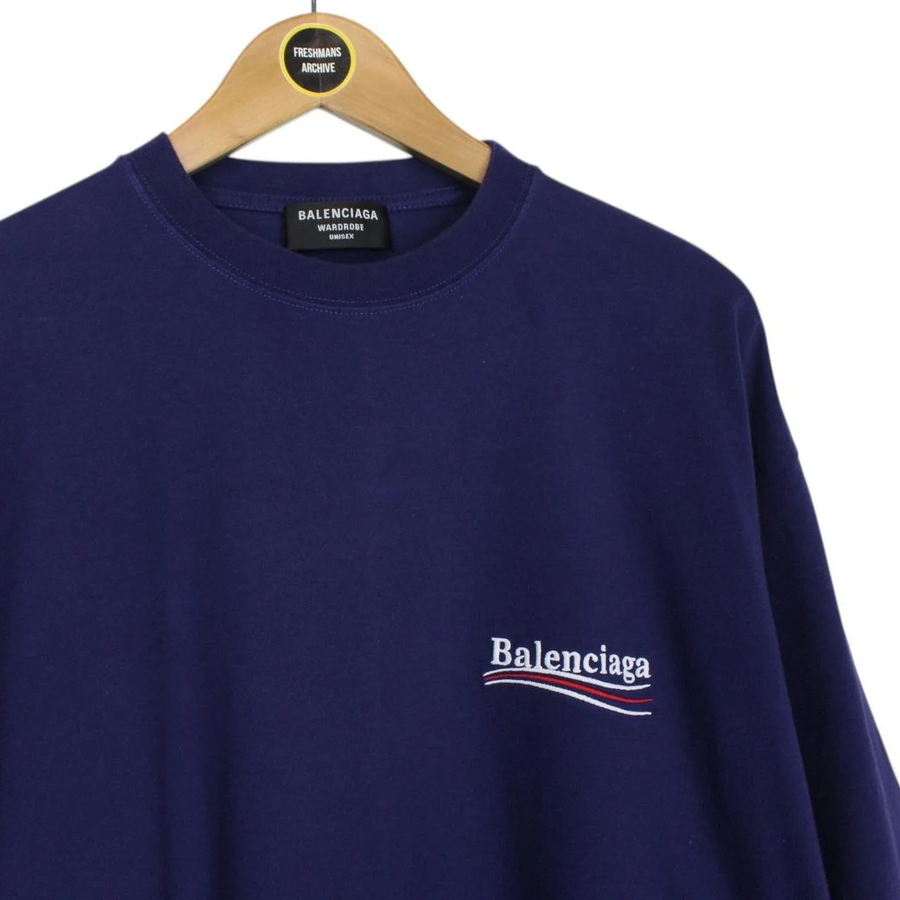 Balenciaga Blue Political Campaign Logo Short Sleeve Cotton T-Shirt
