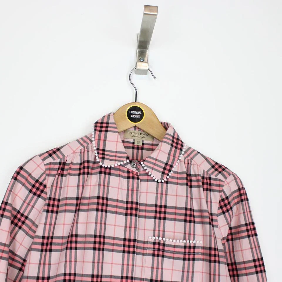 Burberry London Pink Nova Check Lace Trim Collar Long Sleeve Shirt