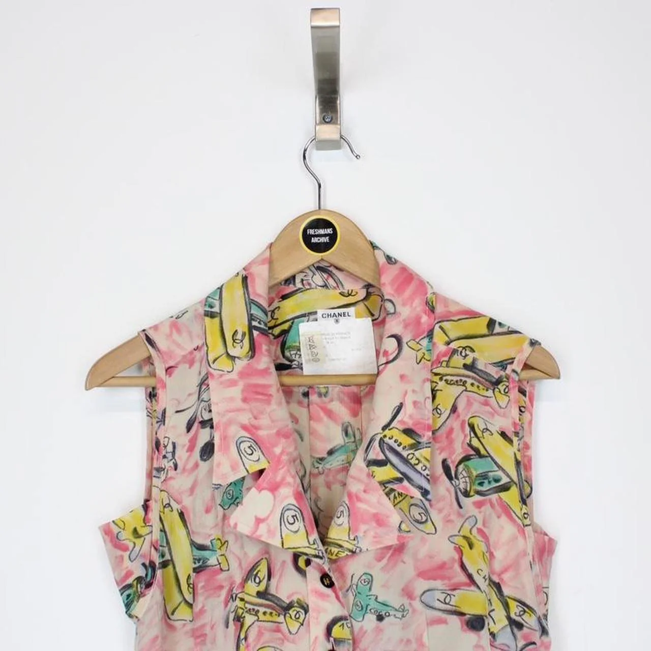 Vintage 1994 Chanel Aeroplane Print Silk Dress Medium