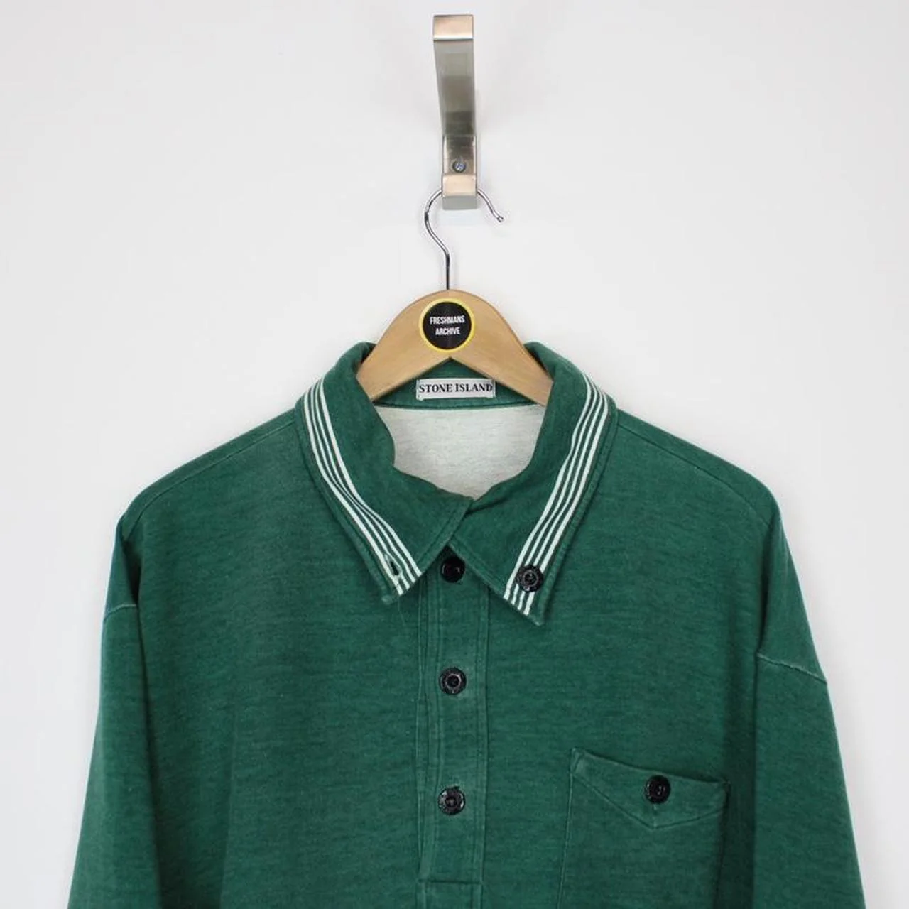 Vintage 1986 Stone Island Green and White Pullover Spellout Sweatshirt Jumper