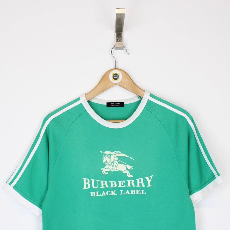 Vintage 90's Burberry Black Label Green and White Short Sleeve Spellout T-Shirt Size on label: 2 Our recommended size: XS Pit to pit (inches): 17 Length (inches): 25.5 All products listed are vintage unless stated otherwise in the description. These items are pre-loved and pre-worn, resulting in small signs of wear and minor fading. We think this adds to their unique authenticity, but if an item has any major flaws these will be stated below. Please contact us if you have any further questions!