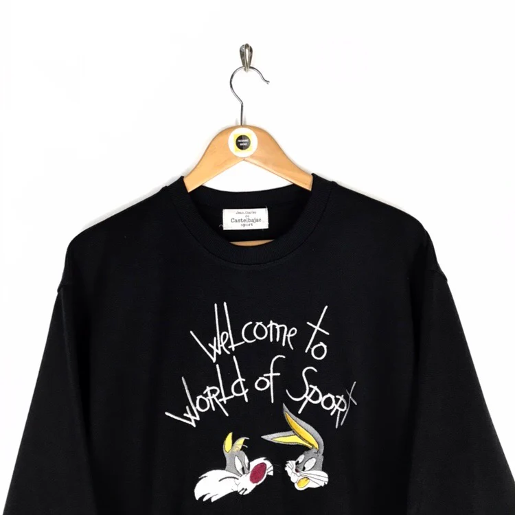 Vintage Jean-Charles de Castelbajac Bugs Bunny Black and Silver Sweatshirt Jumper Size on label: N/A Our recommended size: Large Pit to pit (inches): 23 Length (inches): 27.5 All products listed are vintage unless stated otherwise in the description. These items are pre-loved and pre-worn, resulting in small signs of wear and minor fading. We think this adds to their unique authenticity, but if an item has any major flaws these will be stated below. Please contact us if you have any further questions!