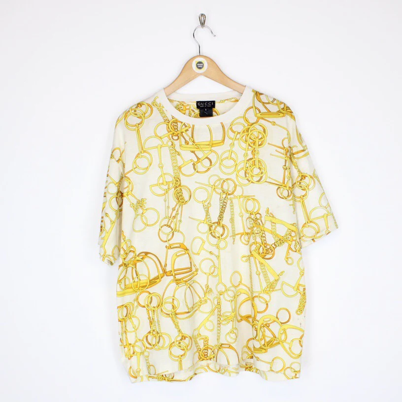 Rare Vintage 90's Gucci White and Gold Stirrups Crew Neck Short Sleeve T-Shirt