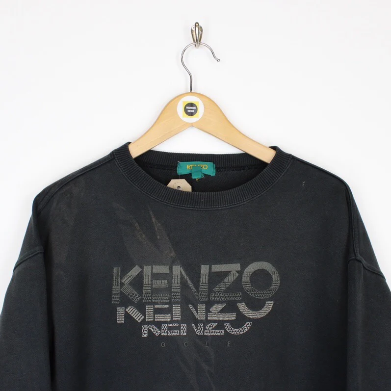 Vintage 90's Kenzo Black and Grey Crew Neck Spellout Sweatshirt Jumper