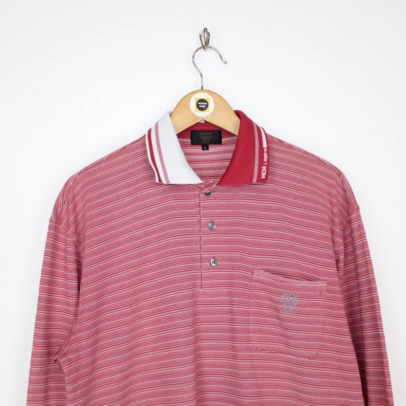 Vintage 90's MCM Red and White Striped Long Sleeve Spellout Polo Shirt Size on label: Large Our recommended size: Medium Pit to pit (inches): 22 Length (inches): 26 All products listed are vintage unless stated otherwise in the description. These items are pre-loved and pre-worn, resulting in small signs of wear and minor fading. We think this adds to their unique authenticity, but if an item has any major flaws these will be stated below. Please contact us if you have any further questions!