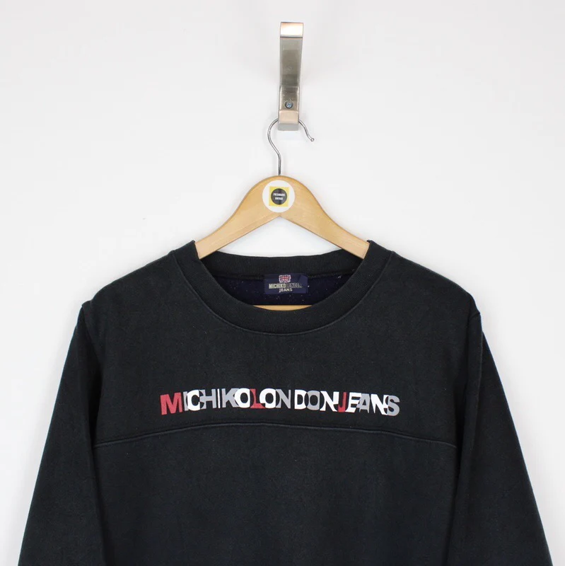 Vintage 90's Michiko London Black Crew Neck Spellout Sweatshirt Jumper Size on label: LL Our recommended size: Women's Medium Pit to pit (inches): 23.5 Length (inches): 24 All products listed are vintage unless stated otherwise in the description. These items are pre-loved and pre-worn, resulting in small signs of wear and minor fading. We think this adds to their unique authenticity, but if an item has any major flaws these will be stated below. Please contact us if you have any further questions!