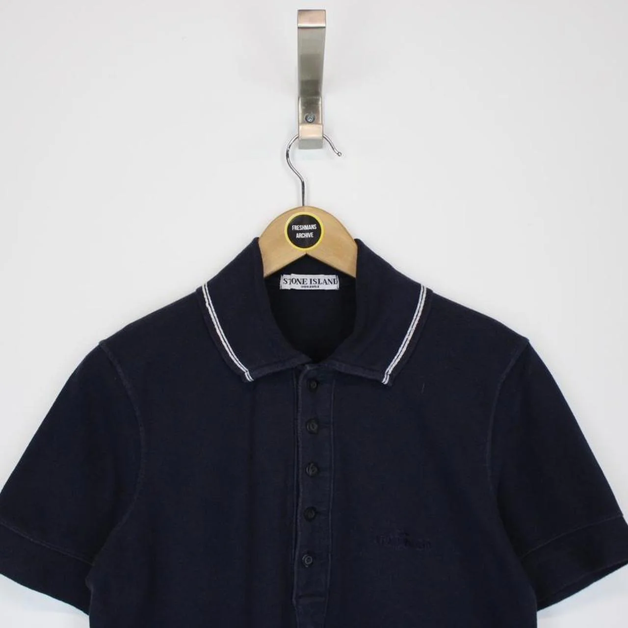 Vintage Stone Island Navy Blue Short Sleeve Spellout Polo Shirt