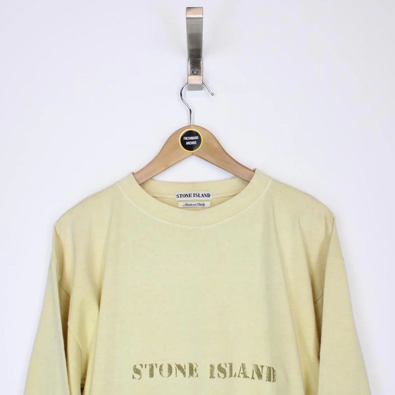 Vintage Stone Island SS 1995 Yellow Crew Neck Spellout Sweatshirt Jumper